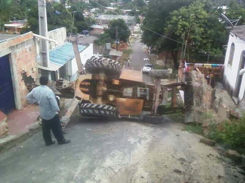 Aconteceu em Manaus Retroescavadeira capota em ladeira na Cidade de Deus.